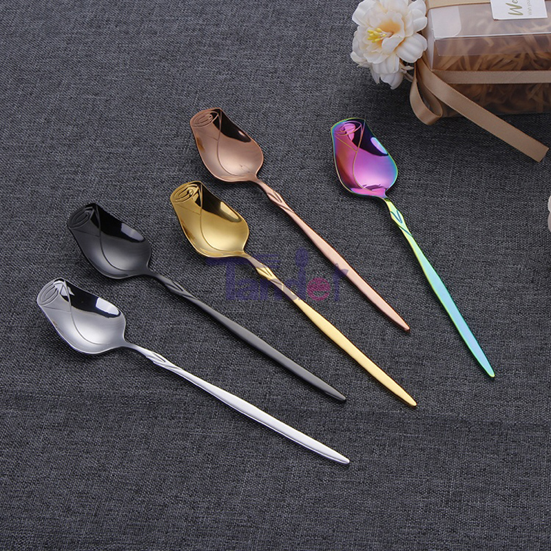 kreativt rostfritt stål desserter, rosenformad sked och gaffel kaffesked