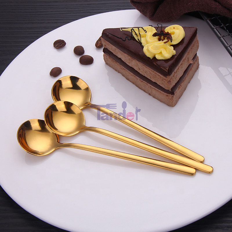 varm försäljning rostfritt stål liten guld glass sked te kaffesked