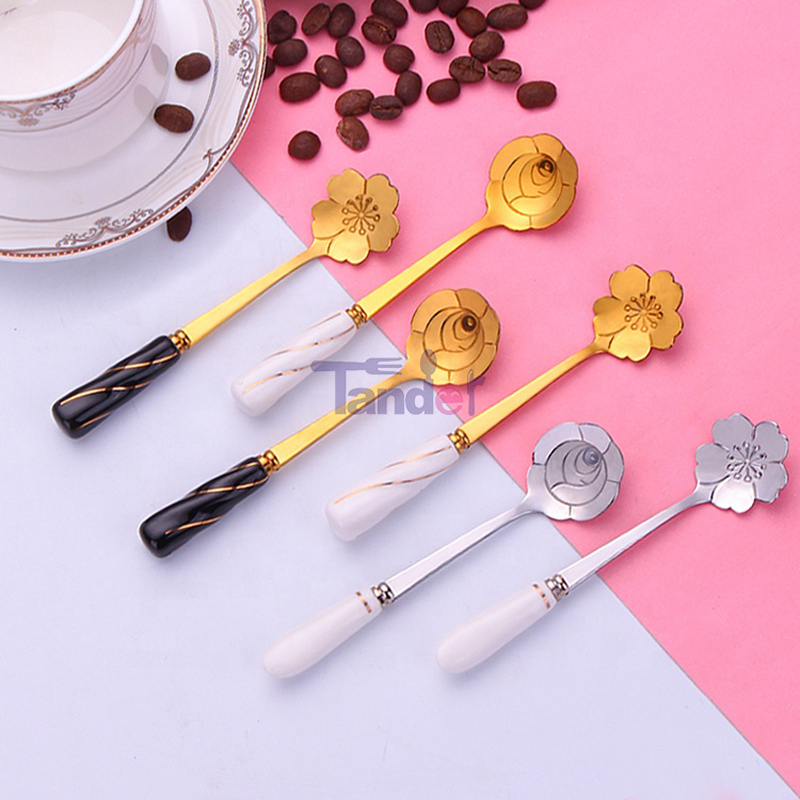 kreativa bestick, guldblomformad kaffesked, rostfri tesked